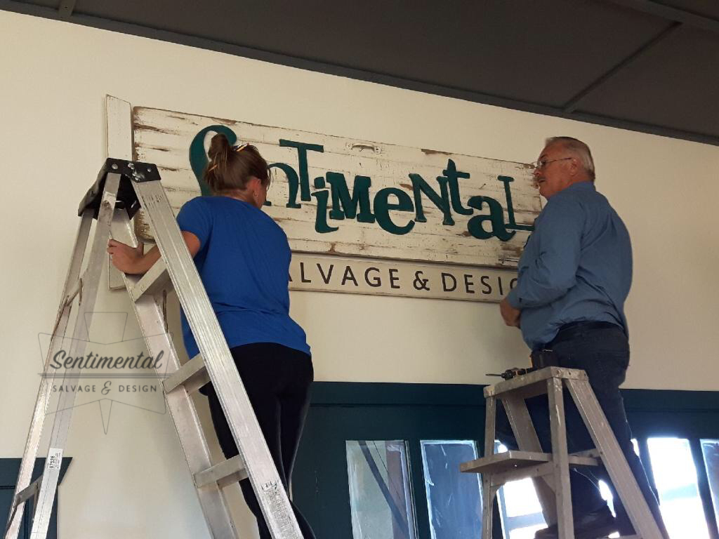 The cubby shelves on the wall in the background are from the parts centre of the dealership that in 1950, was the original purpose for the building that now houses my store. Once full of bearings and other small bits, they now help me organize some of my stains and paints.