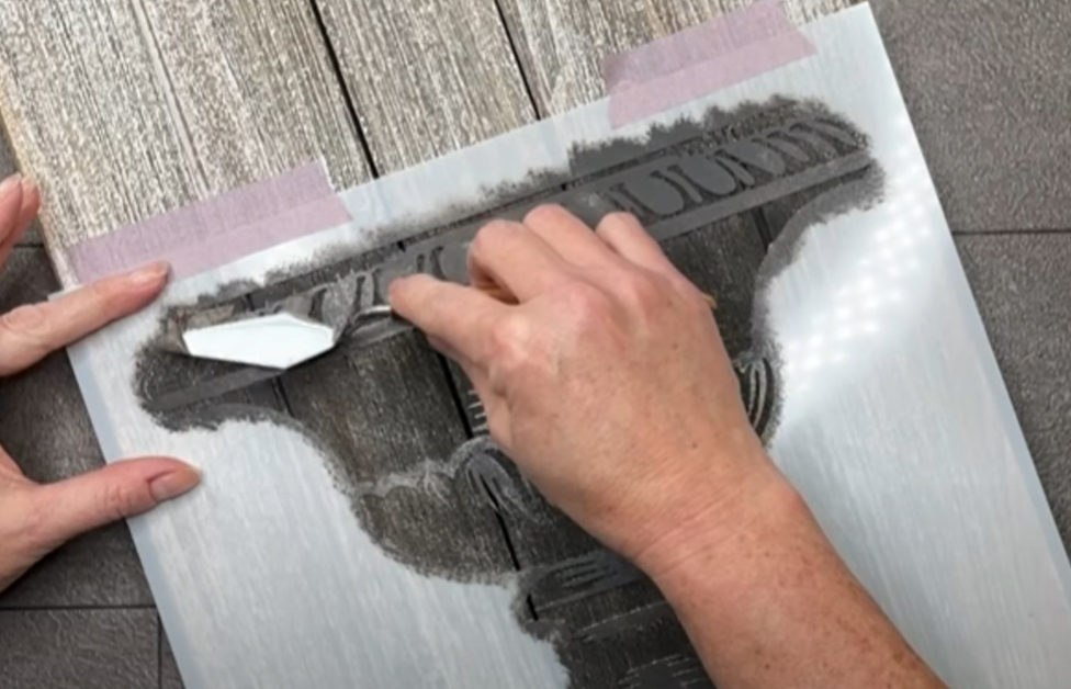 TIP – Use Clear Patina for Versatility: While paint inlays are typically used with chalk-style paint, consider using clear patina as an alternative medium for applying inlays. Clear patina preserves existing textures and colors, providing a versatile option for various surfaces.
