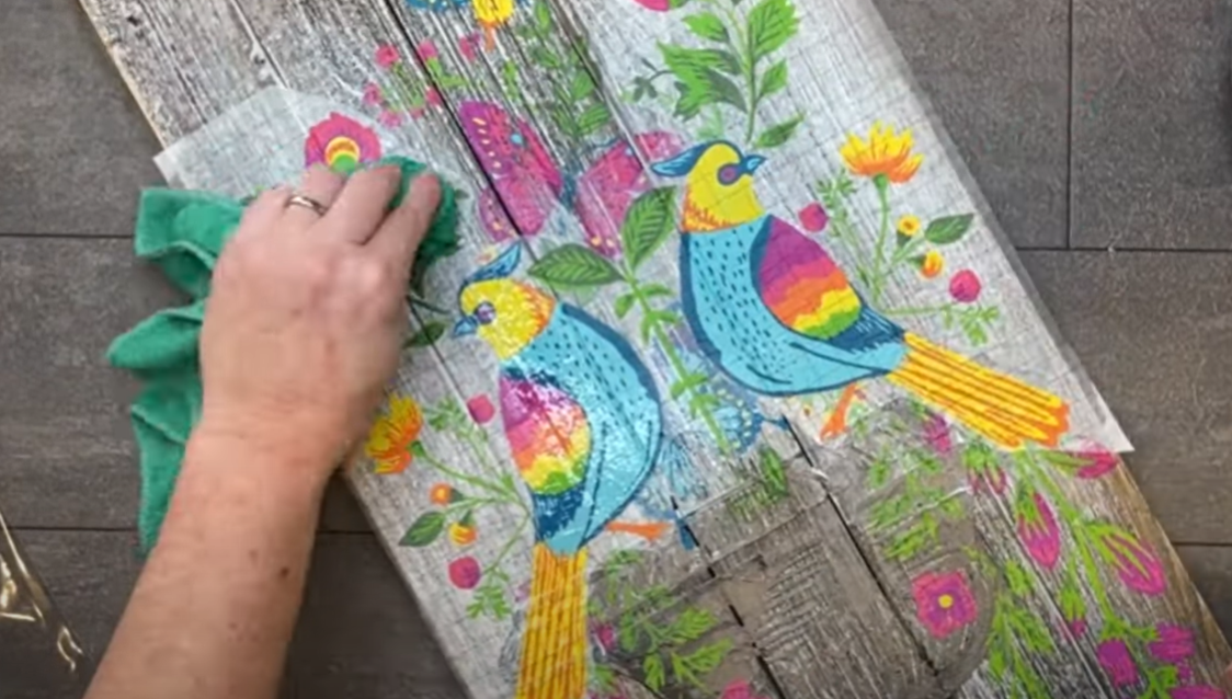After the inlay has dried completely, repeat the misting with water and push with a wet cloth step you did earlier in order to set your Inlay. This is now going to release that backing paper from the Paint Inlay allowing you to gently peel the backing paper away from your project. If you find the paper tearing in spots as you pull, gently press down again with your wet cloth to help release it.